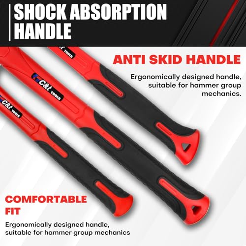 【Package Include】Each pack comes with 5 hammers that include 16oz Ball Peen Hammer, 32oz Ball Peen Hammer, 32oz Rubber Mallet, 3lb Sledge Hammer and 3lb Cross Peen Hammer.
