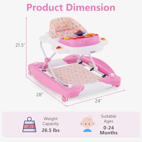 INFANS Baby Walker, 5 in 1 Behind Walker Learning Seated Rocker Bouncer with Removable Music Tray, Adjustable Height, Washable Seat Cushion, Foldable Activity Center for Toddlers (Pink)