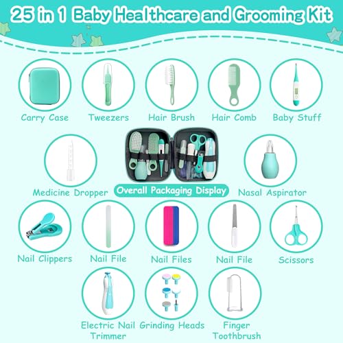 Baby Grooming Kit for Boys Girls Safety Newborn Nursery Essentials Grooming Set Gift for First-time Parents, Green 25 in 1