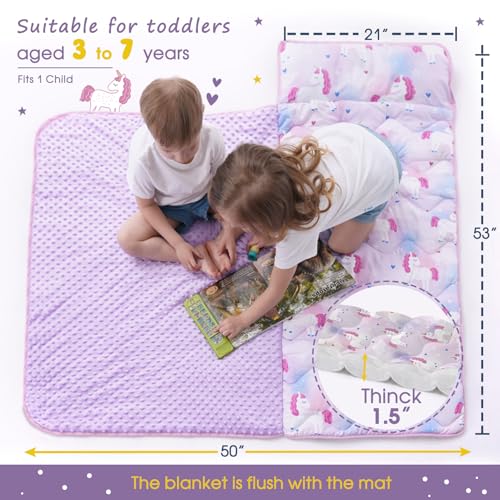 EXTRA THICK AND COZY SLUMBER BAG: Our Toddler Nap Mat offers extra-thick, cushioned, quilted padding for superior comfort. Perfect for boys and girls aged 2-7 during naptime, rest, and sleepovers at prek, preschool, daycare, and kindergarten