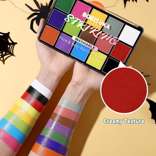 BOBISUKA Face Body Paint, 15 Color Professional Face Painting Palette for Art Theater Halloween Party Cosplay Clown Sfx Makeup for Women Adults, Non-Toxic Washable