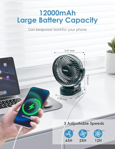 【12000mAh 65-Hours Portable Camping Fan】 – Our have this camping fan battery powered built-in 12000mAh rechargeable battery, rechargeable camping fan have 5V/2A USB-C input port for charging the fan, and a 5V/2A USB-A output port for powering other devices, Which can work continuously for 12-65 hours, good helper for camping trip, power outage, hurricane, etc.
