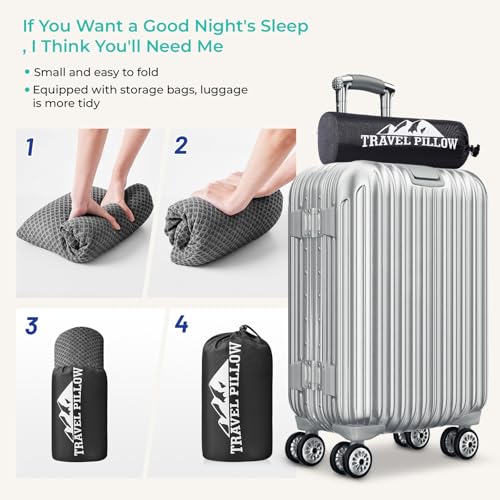 Travel Pillow Memory Foam Pillows, Camping Pillow-Compressible Medium Firm, Breathable Cover, Ideal Backpacking Hiking, Bed Pillows, Airplane and Car (Dark Grey, M)