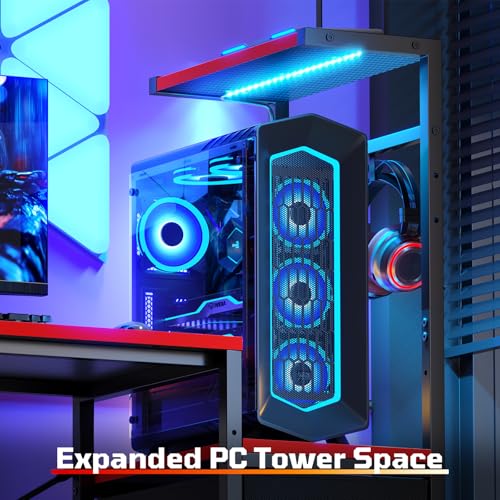 【4 Ways to Set Up, DIY Your Perfect Gaming Zone】Unlike other gaming desks that only offer left or right flip options, Bestier gaming desk goes further with a height-adjustable CPU mount and an open shelf, giving you plenty of storage and layout flexibility. Attach the shelf on the left or right—it’s your call. The adjustable tower stand fits CPUs of all sizes, so you can truly make the space your own.