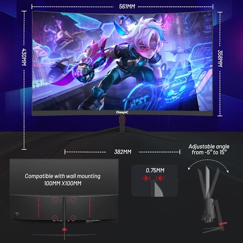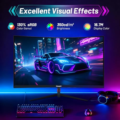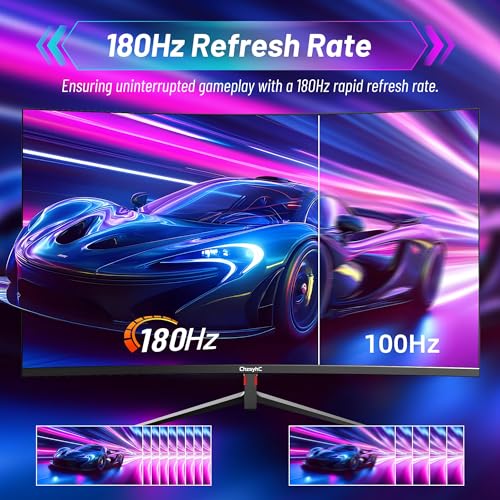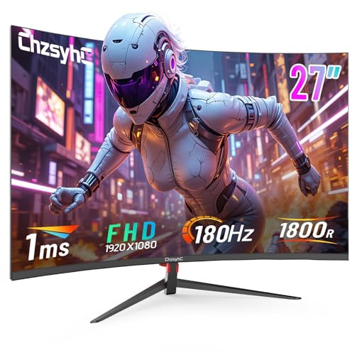 27 Inch Curved 180Hz Gaming Monitor, 1800R Curved Gaming Monitor, 1ms MPRT, FHD(1920×1080P), Freesync, HDMI2.0,DP1.4, VESA Mountable(DP&HDMI Cable Incl.)