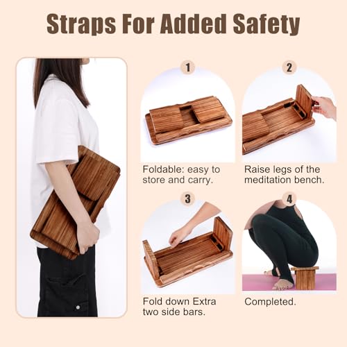 Folding Yoga Meditation Bench – Yoga Kneeling Bench for Adult, Wooden Zen Meditation Stool Kneeling Bench for Yoga Practice (Dark Brown)