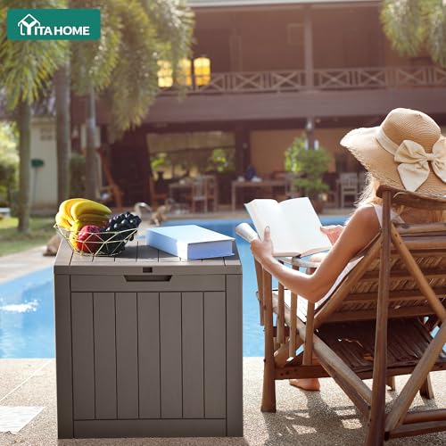 VERSATILE APPLICATION- This YITAHOME deck box has a 30-gallon capacity that provides ample room for daily indoor and outdoor storage of cushions, garden tools, etc.; Can also be used as a side table, patio seating, storage ottoman, or footstool.