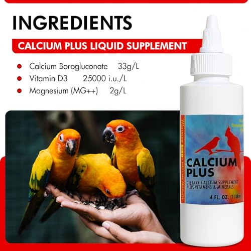 Multiple Size Options: Calcium Plus Liquid is available in 2, 4, 8, 16 or 32 fl. oz. bottles, offering a variety of sizes suit the individual needs of bird owners from small households to larger aviaries.