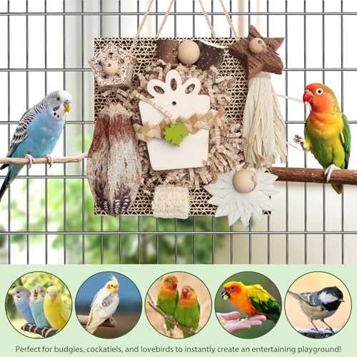 Kyouki Bird Toys, Parakeet Toys, Parrot Toy, Conure Hanging Chewable Cardboard Foraging Suitable for Budgies, Cockatiels, Lovebirds, Sun Conures – and Other Small/Medium Parrots (Medium)