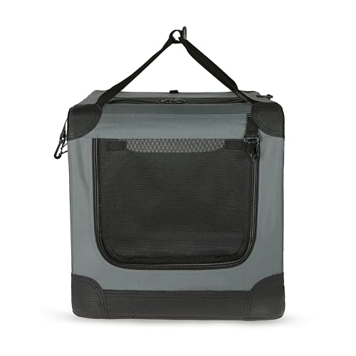 Amazon Basics 4-Doors Portable Soft-Sided Folding Travel Crate Kennel for cat, Dog, and Other Small Animals, Grey, L 36″ x 24″ x 24″