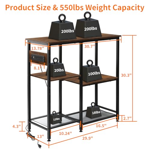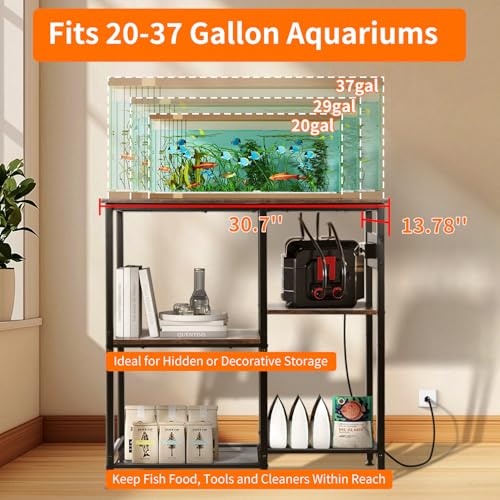 20-29-37 Gallon Fish Tank Stand with 3 Power Outlet 2 USB Port, Metal Aquarium Stand with 4-Tier Adjustable Storage Shelves, 30”L* 13”W*30”H Reptile Tank Stand, Fish Tank Table, 500lbs Capacity