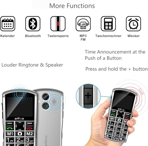 【Easy-to-Use Voice Time Announcement and Speed Dial】The artfone senior mobile phone features a unique one-button time announcement function, activated by holding the volume + key for 3 seconds to announce the current time. Dedicated M1/M2/*/# keys and numbers 2-9 enable speed dialing, allowing quick access to frequently contacted individuals without the hassle of manual input