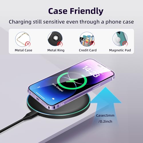 【Extensive Compatibility】15W fast charging mode for iPhone 17 16 15 14 13 12 Series/ Pro/ Pro Max/ mini/ SE 2020/11/11 Pro/11 Pro Max/X/XS/XS Max/XR/8/8+; 10W fast charging mode for Samsung S25/S23/S22/S21/S20/S20+/Note 20/10/10+/S10/S10+/ S10E/ Note 9 and more; 7.5W standard charging mode for all other wireless-enabled Phones. (Note: Adapter is Not Included, QC3.0 adapter is needed for fast charge.)